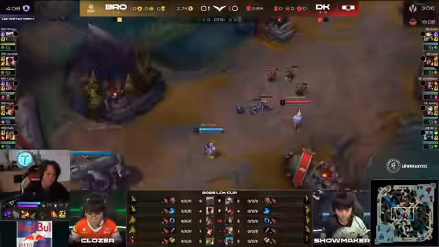 03:35:30Das Spiel ist von einer Serie von Teamkämpfen geprägt, in denen die Brotas' durch präzises Einzel-Ziel-Catching mit Champions wie Pantheon und Ashe Vorteile erzielen. Sie stoppen so gezielt die gegnerischen Carries, insbesondere Showmaker, der sich neutralisiert fühlt. Auf Turnierebene bedeutet dieser Sieg, dass die Brotas' 2-0 gegen die starken Teams Gen.G und Damwon gewinnen, was sie in eine aussichtsreiche Position für die Qualifikation als Dritter in der Gruppe katapultiert, während Damwon bereits als Erster feststeht.