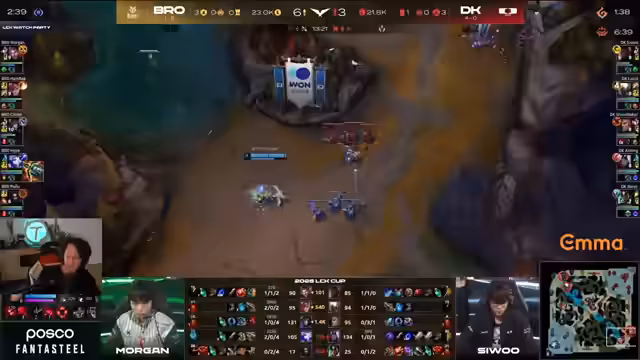 05:36:06Während des Spiels werden wiederholt Fehler der Bros in Teamkämpfen und im Umgang mit Ressourcen kritisiert. So wird ein 4-Teamfight gegen Damwon verloren, was als schlechtes Zeichen für die spielerische Verfassung der Bros gilt. Trotz eines späteren Gewinns des Engagements wird die Partie letztendlich verloren. Die Bros scheiden mit 1-4 aus der regulären Saison aus, während Damwon ungeschlagen mit 5-0 die erste Platzierung belegt. Der Streamer gratuliert Damwon zum Sieg und analysiert die verbleibende Tabelle der Liga.