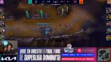 10:58:58Das Spiel der Bros gegen Damwon Kia erreicht einen kritischen Punkt mit dem Spawn des Cloud Drakes. Die Bros nutzen die Gelegenheit, um den Turm in der Top-Lane weiter zu belagern. Währenddessen kommt es zu einem 4-4 Fight um den Drachen, der jedoch unglücklich für die Bros endet, da ihr Top-Laner T1 im Fight getötet wird. Mit dem fehlenden Smite und der Abwesenheit von Showmaker können sie den Draken nicht klauen. Dies markiert einen entscheidenden Wendepunkt im Spielverlauf.