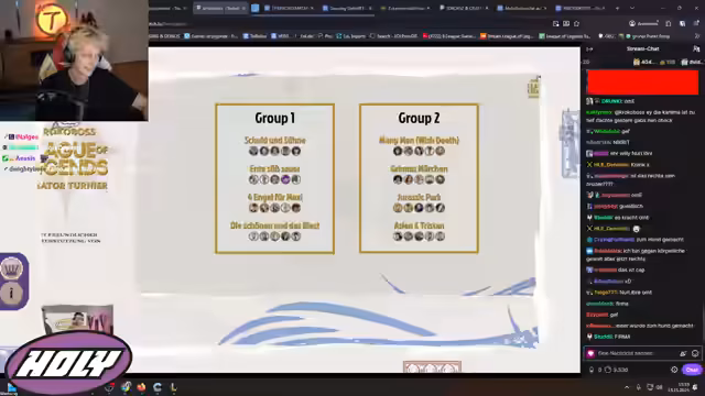 10:14:28Unmittelbar vor einem Spiel im Turnier werden Champion-Picks besprochen. Der Streamer kündigt einen unorthodoxen Call an und plant, einen Sinch Top zu spielen. Die Strategie zielt darauf ab, voll AP zu gehen. Nach einem Sieg wird die aktuelle Turniersituation analysiert: Das Team hat drei Wins und befindet sich im Upper Bracket. Die Konstellation ist komplex, da ein Verlust möglicherweise in einen Tiebreaker oder sogar in das Lower Bracket führen kann, während ein Sieg den Einzug ins Finale bedeutet.