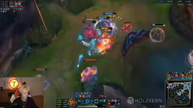 05:42:42Im späteren Verlauf des Spiels gerät das Team unter starken Druck. Ein Gegner hat einen signifikanten Vorteil und die Situation scheint hoffnungslos. Der Streamer wird emotional und beschreibt sich als 'useless' und verzweifelt. Das Team versucht, durch das Einsammeln von Minions (Stacks) und das Ausspielen von Fähigkeiten, die im späteren Spielverlauf stark werden, wie zum Beispiel der Ult von Mundo, zurückzukommen. Es wird betont, dass das Spiel nun im Kopf entschieden wird und mentale Stärke entscheidend ist, um das scheinbare Unentschieden in einen Sieg zu verwandeln.