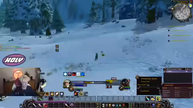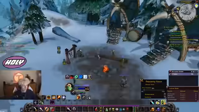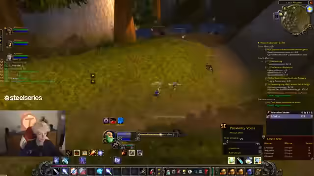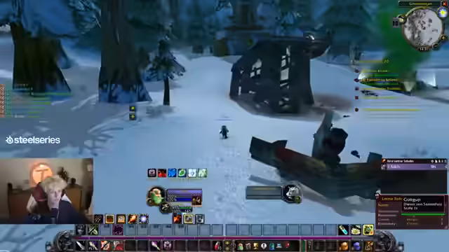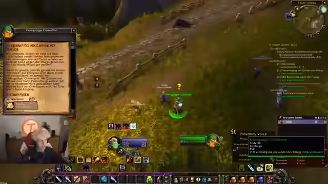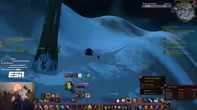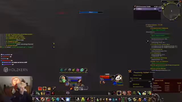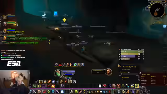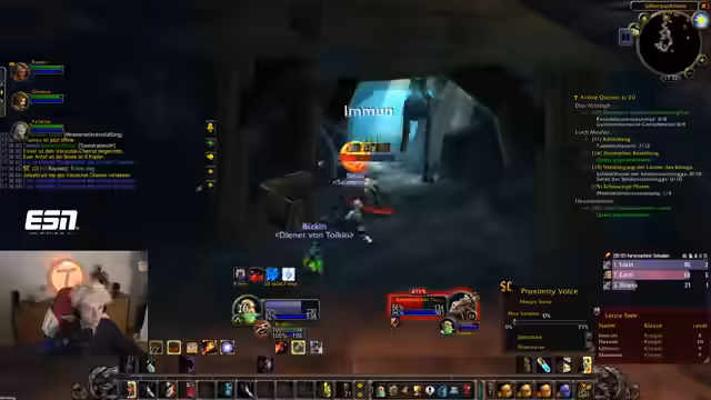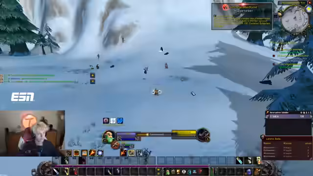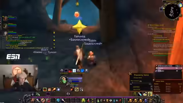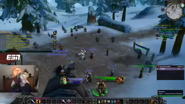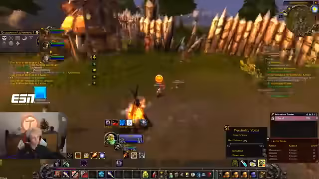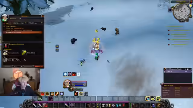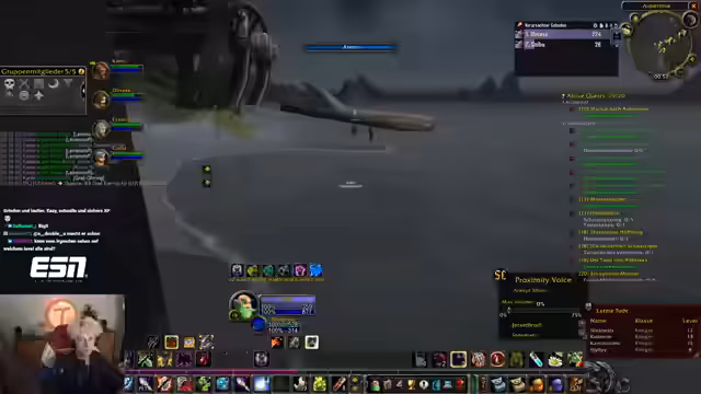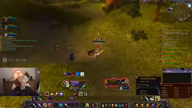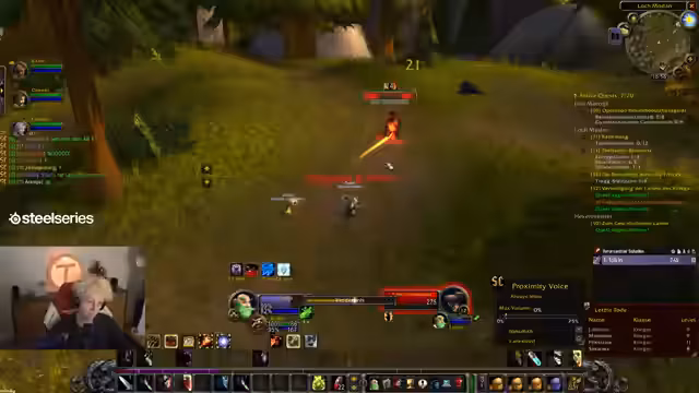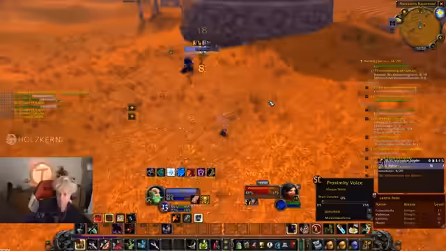 00:37:41Der Countdown wird auf 0 heruntergezählt und alle Streamer loggen sich in World of Warcraft ein. Sofort nach dem Start erleben die Spieler eine massive Überfüllung der Startgebiete, was das Leveln erschwert. Dabei werden technische Probleme wie fehlender Voice-Chat im Spiel und unübersichtliche UI-Einstellungen deutlich, was die Koordination am Anfang erschwert.