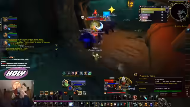 14:08:49Der Fokus verschiebt sich hin zum geplanten Durchzug des Deadmines-Dungeons. Innerhalb der Gruppe entsteht eine Spannung, als ein Spieler namens Kani den Plan in Frage stellt und behauptet, lieber mit anderen Spielern zu gehen. Dies führt zu einer Diskussion über die Tauglichkeit der Gruppe, da sie aus drei Warlocks besteht. Es wird erörtert, ob eine solche Gruppenzusammensetzung mit einem Tank, einem Heiler und drei Schadensdealern überhaupt funktionieren kann, was wiederum zu der Idee führt, dass der Schadensoutput stark sein könnte.