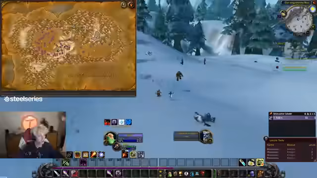 11:14:16Der Streamer findet mit Hilfe des Chats und eines Videos den richtigen Weg über den gefrorenen Wasserfall und durch die Berglandschaft. Er erreicht sein Ziel, Menethil, und ist erleichtert. Er plant, dort seine Berufe wie Alchemie und Erste Hilfe weiterzuentwickeln und benötigte Lehrer aufzusuchen. Obwohl er Zeit verloren hat, hofft er, dies durch das effizientere Farmen im neuen Gebiet wieder wettzumachen.