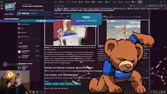 03:16:08Nachdem zwei Projekte erfolgreich abgeschlossen wurden, wird ein drittes Spendenprojekt gestartet. Es geht um einen neuen Gravity Chair für zwei Kinder, die an einer seltenen Erkrankung leiden, die als frühkindliche Demenz bezeichnet wird. Diese Erkrankung führt dazu, dass die Kinder schnell abbauen und bettlägerig werden, wodurch sie nicht mehr am Familientisch sitzen können. Der Gravity Chair soll ihnen ermöglichen, weiterhin am Familienleben teilzuhaben. Der Streamer zeigt sich tief betroffen von der Schwere der Krankheit und betont die Wichtigkeit der Spenden. Jeder gesammelte Stack wird weiterhin in Euro umgerechnet und direkt für den guten Zweck gespendet, wobei das Ziel ist, den Kindern ein besseres Leben zu ermöglichen. Die Community wird dazu aufgerufen, sich weiterhin zu engagieren und zu spenden, um dieses wichtige Projekt zu unterstützen.