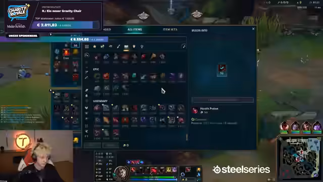 01:52:09Die Spendensammlung läuft sehr erfolgreich, und Niki wird für seine Großzügigkeit mit 350 Euro gelobt. Der Streamer ist beeindruckt von der Unterstützung und stellt fest, dass bereits 550 Euro gesammelt wurden. Er überlegt, wie er die Arena-Runde am besten bestreiten kann, um weitere Spenden zu generieren, und diskutiert Item-Builds gegen bestimmte Champions. Es wird deutlich, dass das Ziel, den ersten Wunsch zu erfüllen, fast erreicht ist. Die Aktion wird als wichtig und bedeutungsvoll hervorgehoben, da sie Kindern in Not hilft. Der Streamer bedankt sich bei allen Spendern und betont die Wichtigkeit, etwas zurückzugeben.