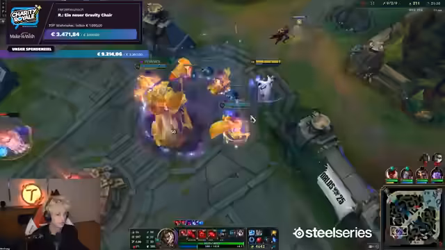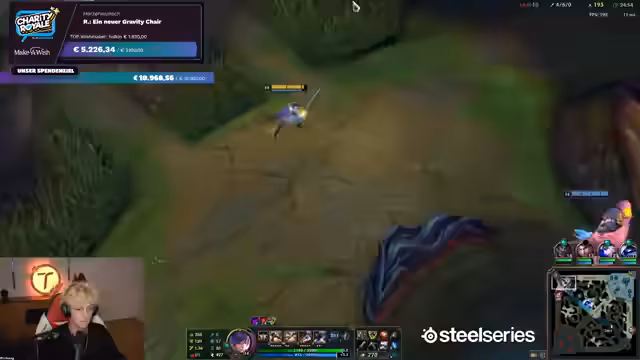 03:38:18Es werden Gerüchte über GUMAYUSIs möglichen Wechsel zu Hanwha Life und Paces Rückkehr zu T1 diskutiert, was bei den Zuschauern für Aufregung sorgt. Der Streamer reagierte bereits anderthalb Stunden live auf diese Entwicklungen, die er als völlig unerwartet und wild beschreibt. Währenddessen wird das Spiel mit Swain fortgesetzt, wobei jeder Stack 15 Euro wert ist. Die Strategie konzentriert sich auf das Sammeln von Stacks durch Treffer mit Swains Fähigkeiten, um möglichst viel Geld für die Spendenaktionen zu generieren. Die Community ist weiterhin sehr aktiv und spendet fleißig, um die verschiedenen Projekte zu unterstützen. Der Streamer zeigt sich begeistert von der Effizienz des Stack-Sammelns und der Großzügigkeit der Zuschauer.