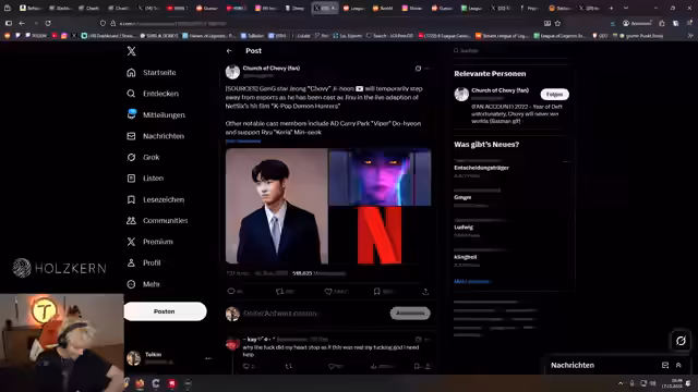 00:55:42Die League of Legends-Szene wird von einer 'absoluten Bombe' erschüttert, ausgelöst durch die massiven Änderungen in der LPL und LCK. Die Nachricht, dass Guma T1 verlässt, wird als 'krank' bezeichnet. Es wird auf einen alten Comic-Post von Gumas Schwester Bezug genommen, der die Unsicherheit und die Herausforderungen in Gumas Karriere beleuchtet, einschließlich seiner früheren Benches. Die Dramatik der Situation wird durch die emotionale Darstellung von Guma, der sich immer wieder beweisen muss, und die ikonische Übergabe der MVP-Trophäe durch Uzi verstärkt. Es wird auch über die offizielle Bestätigung von T1 und LoL Esports berichtet, dass Guma das Team verlassen wird, was durch ein Video mit Gumas Statement untermauert wird. Gleichzeitig kursieren inoffizielle Gerüchte, wie die mögliche Unterschrift von Zeus bei Hanwha Life Esports, die von koreanischen Nachrichtenagenturen verbreitet, aber noch nicht offiziell bestätigt wurden, was die Gerüteküche weiter anheizt.