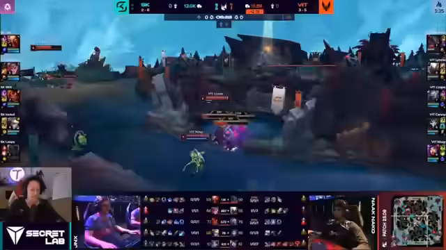 06:12:46Das Spiel startet mit einer dominanten Performance von Vitality. Innerhalb weniger Minuten bauen sie einen massiven Goldvorsprung auf, der das Spiel frühzeitig zu ihren Gunsten entscheidet. Trotzdem zeigt SK Gaming ansatzweise Widerstand, versucht durch gezielte, isolierte Plays den Rückstand zu verringern. Die Fähigkeiten von Niski auf Poppy werden mehrfach hervorgehoben, doch seine Bemühungen sind letztendlich nicht ausreichend, um das unaufhaltsame Snowballen von Vitality zu stoppen. Das Spiel endet schließlich mit einem klaren Sieg für das französische Team, was das Ausscheiden von SK Gaming aus der Spring Split Regular Season bedeutet.