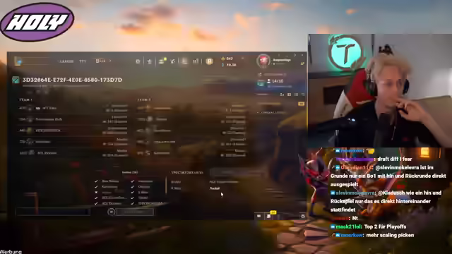 00:07:34Es wird auf anstehende, schwierigere Matches hingewiesen, da die Gegner in höheren Elos spielen, darunter 500 LP Master und zwei Grandmaster-Spieler. Dies deutet auf eine intensivere Wettbewerbsphase hin, verglichen mit den vorherigen Gruppen. Die Playlist wird als motivierend und positiv für den Start in den Tag hervorgehoben. Es wird ein entspannteres Gameplay ohne großes Nachdenken angestrebt, um gut in den Morgen zu starten. Es wird ein Collector gerusht, was als unkonventionell und riskant angesehen wird. Der Streamer äußert sich humorvoll über die Kreativität und den Mut, solche unüblichen Entscheidungen zu treffen, auch wenn sie nicht immer erfolgreich sind. Es wird die Frage aufgeworfen, warum eine Spielerin in einer bestimmten Situation im Chat schreibt, was zu Verwirrung führt und die Sinnhaftigkeit ihrer Handlung in Frage stellt.