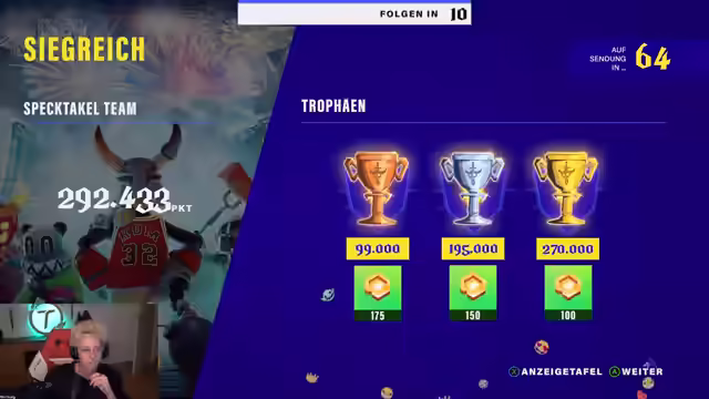 10:39:42Die Spieler erhalten unterschiedliche Auszeichnungen für ihre Leistungen im Spiel. Es wird über die Möglichkeit diskutiert, weiterzuspielen oder einen anderen Modus auszuprobieren. Der Streamer äußert den Wunsch, sich nicht mehr muten zu müssen, um seine Mitspieler zu 'flamen'. Es wird ein Mew-Potten gefunden und es gibt technische Probleme. Die Gruppe spricht über Twitch-Drops und die Möglichkeit, neue Outfits zu erhalten. Es wird über Duelle und den Dungeon-Baum-Modus gesprochen, wobei es zu Schwierigkeiten kommt, den Raum zu verlassen. Der Streamer erzählt von einem Problem mit seinem Controller, das er beheben konnte. Es wird über österreichische Ausdrücke und deren Bedeutung diskutiert. Die Gruppe spricht über Freundschaften und die Bedeutung von Männerfreundschaften, wobei auch Körperkontakt und das Überwinden von 'masculine toxicity' thematisiert werden.