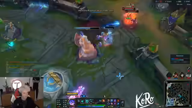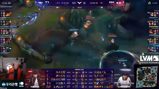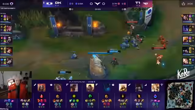 02:45:36T1 macht erhebliche Fehler in der Map-Kontrolle und Positionierung. Doran wird dreimal erfolgreich gankt, aber überlebt knapp, was den Gegnern Gold und Vorteile bringt. Die Top-Lane benötigt Unterstützung, aber durch die Fokussierung auf Bot-Land erhält diese keine nötige Hilfe. Dies führt zu einem Gold-Vorteil für Damwon von 3.200 Gold. Die fehlende Koordination zwischen den Lanes zeigt sich besonders im Fehlen von Engage-Möglichkeiten und der unzureichenden Vision in kritischen Areas der Map.