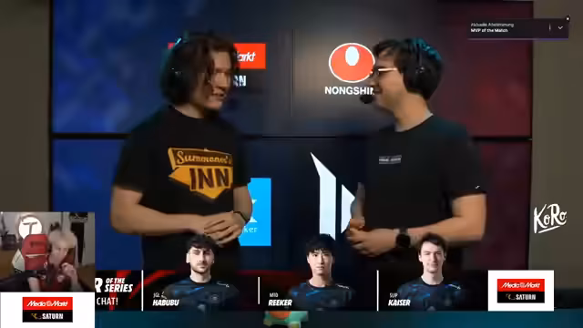 12:09:33Nach dem Game wird das gesamte Match analysiert, besonders die Stärken des Gegners und die eigenen Schwächen im Early-Game. Das Team ist zufrieden mit dem Sieg und der Position in der Gruppenphase. Es gibt einen Ausblick auf die kommende Gruppe B gegen Teams wie Eintracht Spandau und EWU, sowie die Erwartungen für die weiteren Spiele.