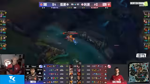 11:26:26Im Mid-Game zeigt Rin aggressives Verhalten und kämpft darum, die Botlane zu kontrollieren. Dennoch kämpft das Team mit den Konsequenzen des frühen Verlusts. Es gibt Diskussionen über strategische Entscheidungen, Makuh wird als mächtiger Spieler identifiziert, der das Spiel gestalten kann, während das Team versucht, zurück ins Spiel zu finden.