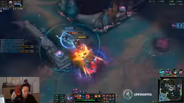 07:44:50Die Aufmerksamkeit kehr zu dem aktuellen League of Legends-Spiel zurück. Der Streamer bemerkt das Fehlen von Flash bei einem gegnerischen Champion, was er als "fuck immer" bezeichnet. Die Tension im Team steigt, da der Streamer die spielerischen Entscheidungen seines Mitspielers kritisiert und die Taktik als "Fake bekifft" abstempelt. Es finden sich Blame-Game-Aussagen, wobei der Streamer behauptet, durch die Grundstimmung des Spielers angespannt worden zu sein. Parallel dazu wird eine neue Duelleinsatz-Serie angekündigt, die als "L9" bezeichnet wird und einen möglichen Platz im Team in Aussicht stellt.