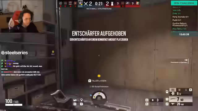 04:15:28Die Zuschauerinteraktion ist weiterhin präsent, bei der ein Sponsoringangebot für Barttransplantationen humorvoll erwähnt wird. Der Streamer gibt seinem Mitspieler Kongo Toni, der Rainbow Six zum ersten Mal spielt, grundlegende Tipps für die Rolle des Jägers. Die Konzentration liegt auf der Taktik, den Bomben zu sichern und das Campen als wichtigste Strategie zu begreifen, um dem Gegner den Zugriff auf das Ziel zu verwehren.