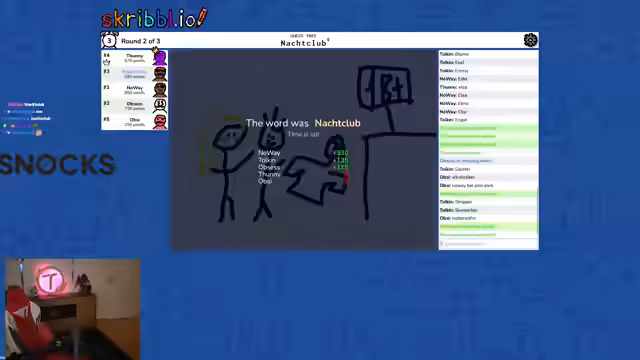 08:03:12Die Energie des Streams lenkt sich auf ein interaktives Scribble-Spiel um. Dabei wird eine Art "Pictionary" gespielt, bei dem versucht wird, Wörter zu erraten. Die beschriebenen Begriffe wie "Baumstumpf" (später als Manuel Neuer identifiziert), "Vampir" oder "schlitzern" führen zu viel Verwirrung und belustigten Reaktionen. Streamer und Chat finden sich über die absurden Darstellungen und die misslungenen Versuche, die Begriffe zeichnerisch umzusetzen. Die Stimmung ist geprägt von Humor und der Freude an der gemeinsamen, etwas wahnwitzigen Aktivität.
