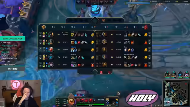 00:41:40Der Streamer zeigt sich frustriert über den mangelnden Map-Sinn seines Teams. Nachdem er 14 Minuten sein Match-Up dominiert hat, wird er von seinem Gegner auf der Map getötet, was den Verlust seines gesamten Turms und der Quest zur Folge hat. Er beschreibt, dass das Team trotz guter Lage keinen Zugang zum wichtigen Dracken findet und dieses kontroverserweise freiwillig gibt. Das Spiel gilt dadurch als extrem schwer zu gewinnen und fehleranfällig.