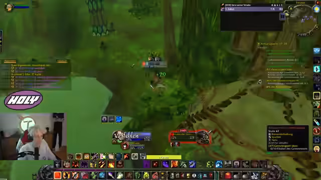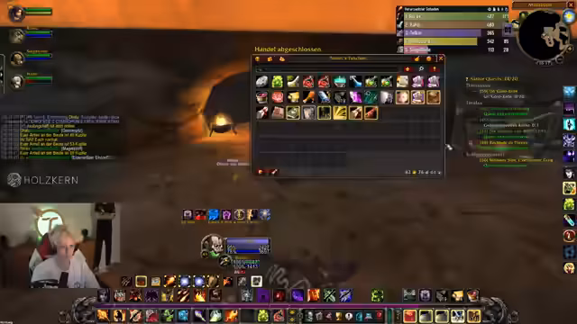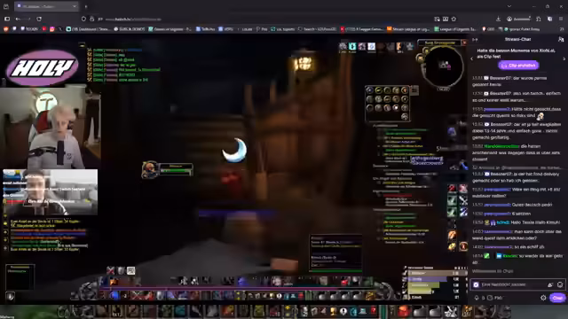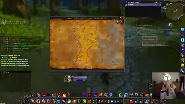 11:06:50Unmittelbar vor dem Erreichen von Level 60 sinniert der Streamer über seine weiteren Pläne im Spiel. Sein primäres Ziel ist es, in den nächsten Dungeons 'Teufelsstoff' zu farmen. Er erwähnt auch seine Sorge bezüglich des Rufs in bestimmten Gebieten, wie Holzschlundfeste, den er auf 'neutral' verbessern muss. Eine kurze Auseinandersetzung mit einem PvP-Angriff durch einen getarnten Horden-Spieler zeigt die unerwarteten Gefahren des Spielers.