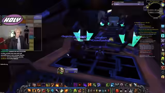 05:33:43Der Streamer fehlt der Mechanik 'Schattenbrand' und möchte seine Quests für den morgigen Besuch im Tempel vorbereiten. Er ist müde nach einem 20-Stream, möchte aber am nächsten Morgen um 10 Uhr starten. Er fragt nach der Notwendigkeit und Dauer der Klassenquests, die ab Level 50 spielbar sind, und ob er sie bereits beginnen oder auf morgen verschieben sollte. Unabhängig davon will er weiter WoW spielen, auch wenn er die Entscheidung, Seasonstart am 7. oder 8. November, noch nicht kennt. Er hat den Plan, Level 60 vor der Saison zu erreichen, ist aber unsicher, ob er das in den verbleibenden zwei bis drei Tagen schafft.