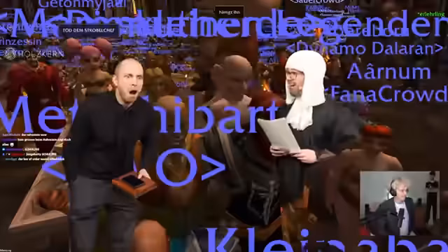 09:04:24Zeugen wie Bleach und Soos werden in den Zeugenstand gerufen und geben eidesstattlich aus. Soos schildert, dass er in Todesgefang war und Chef Strobl ihm durch einfache Aktionen wie das Ziehen von Aggro hätte helfen können. Die Verhandlung dreht sich um die Frage der Verantwortung: Besteht eine konkludente Schutzpflicht, oder sind alle Spieler für ihr eigenes Handeln verantwortlich, da es sich um einen Hardcore-Modus handelt? Die Verwirrung über die genauen Pflichten der Rollen (Tank, Healer, Schurke) ist ein zentrales Thema.