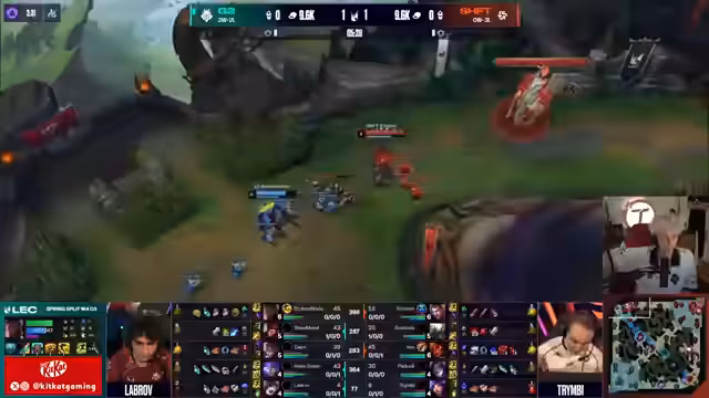 01:03:52G2 vs SHFT begins with an intense skirmish around Drake. Caps makes a crucial mistake by flashing aggressively, leading to the loss of Arcades champion. G2 capitalizes on this fight, winning not only the skirmish but also securing the Drake objective. This early advantage sets the tone for the game, with G2 establishing dominance in the river area. The shifters appear slightly disoriented, struggling to find the right flow in their rotations and losing valuable options due to clever positioning by G2.