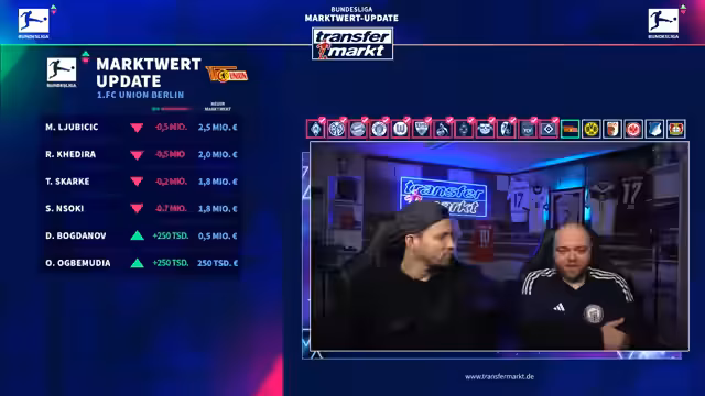 03:05:20Union Berlin zeigt solide Leistungen, doch die Marktwerte bleiben aufgrund der Teamstruktur moderat. Anpassungen bei Spielern wie Ansa und Hemmlein erfolgen, wobei die Rolle des verletzungsanfälligen Juronavic analysiert wird. Die Kaderstruktur bietet wenig Spielraum für hohe Marktwerte, da Schlüsselspieler wie Djokic oder Götze kaum Transferinteresse generieren. Nsokies kurze Einsatzzeit und Fehler führen zu weiteren Abwertungen.