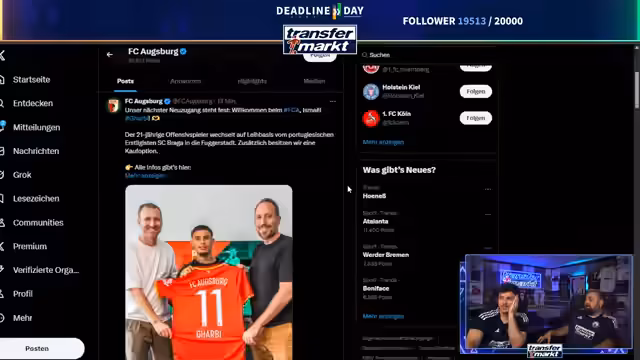 05:04:41Der Stream erreicht einen neuen Zuschauerrekord, hat nun mehr Zuseher als der Boniface-Chat. Fenerbache verpflichtet den Stürmer Dakim von Salzburg für 22,5 Millionen Euro. Dies könnte den Weg für Amara free zu Benfica ebnen. Eine Vielzahl von Transfers, die bisher als fix galten, wurde von den Vereinen noch nicht bestätigt, da die Veröffentlichungen oft gebündelt erfolgen.