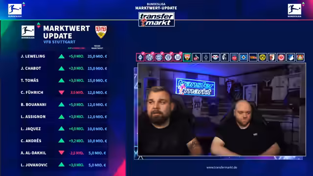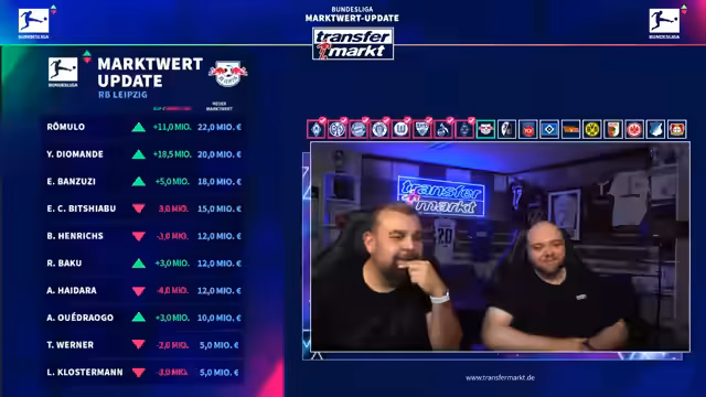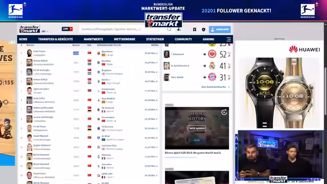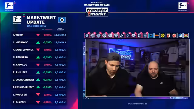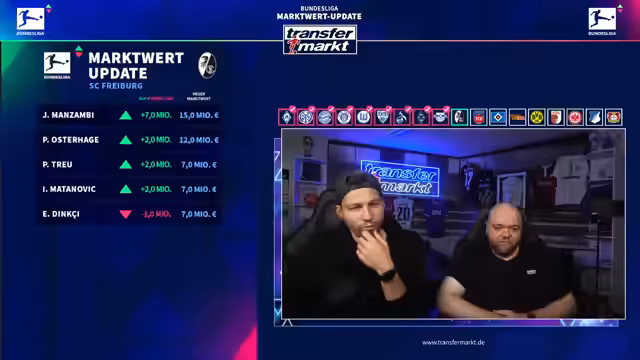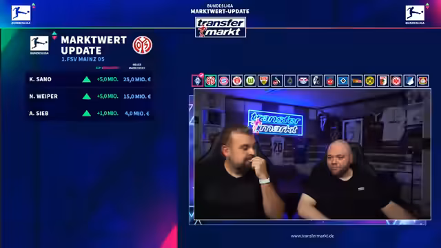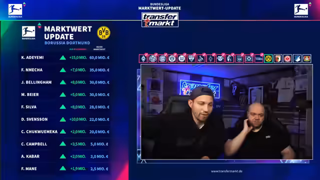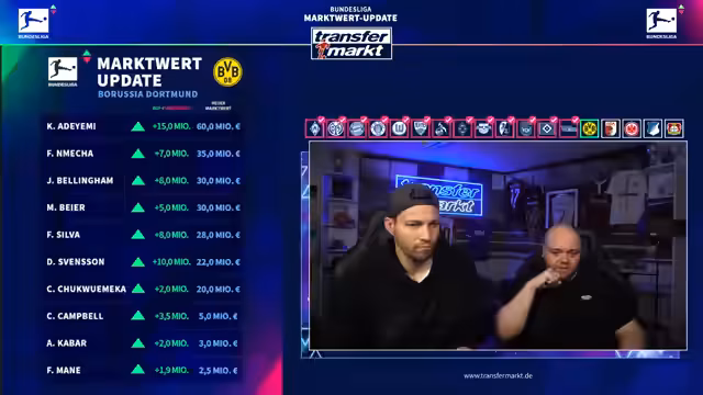 00:05:02Nach dem Start des Livestreams wird die Technik überprüft und bestätigt, dass Audio und Video einwandfrei funktionieren. Es wird betont, dass der Stream auf YouTube parallel läuft und alle Systeme laufen. Die Moderatoren begrüßen das Publikum und kündigen an, dass sie in den nächsten Stunden die neuen Marktwerte der Bundesliga-Spieler vorstellen werden.