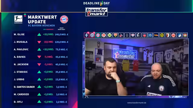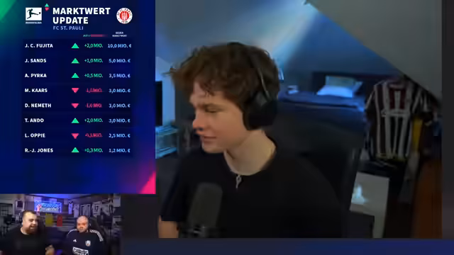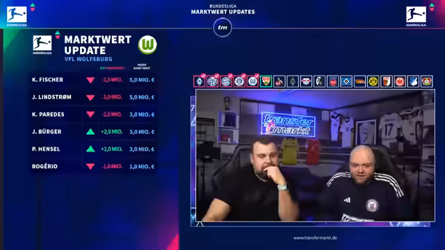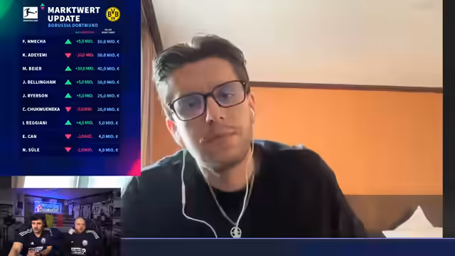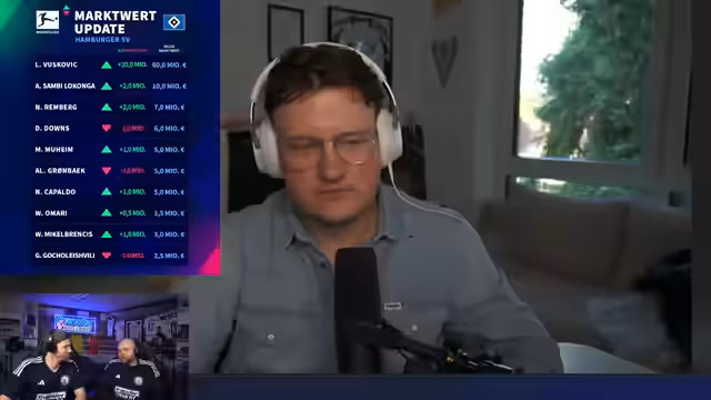 03:44:12Zu wiederholenden Fragen von Zuschauern werden spezifische Marktwerte erklärt. Vuskovic bleibt bei 60 Millionen Euro, was seinen Status und die Nachfrage unterstreicht. Bei Hugo Larsson wurde der Wert deutlich gesenkt, da er an Leistung verliert, verletzt ist und das Interesse anderer Teams nachgelassen hat. Auch seine anhaltenden Gesundheitsprobleme, wie Mandelbeschwerden, spielen eine Rolle. Dagegen bleibt Garcia bei 20 Millionen, da bei einem 29-Jährigen ohne konstant überragende Leistungen keine weitere Steigerung zu erwarten ist.