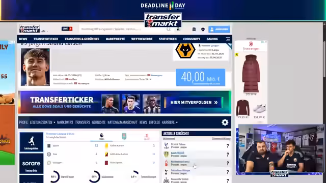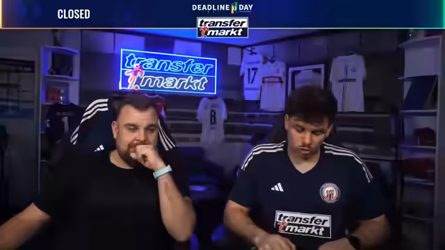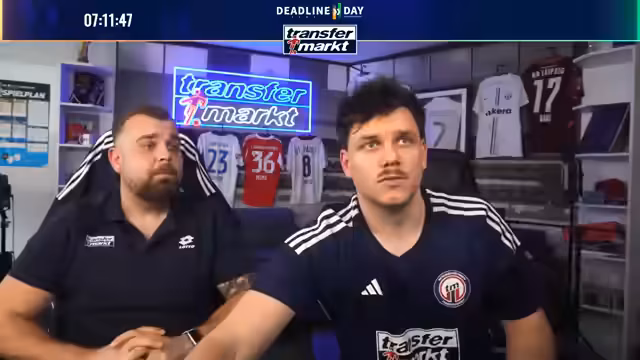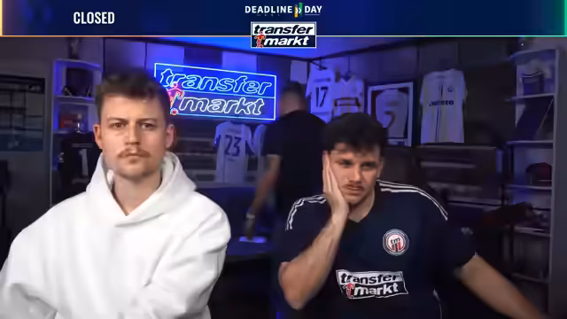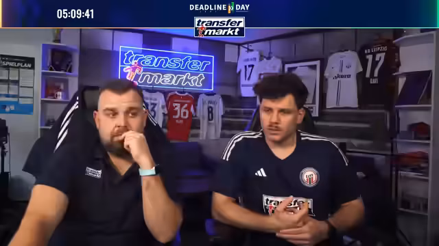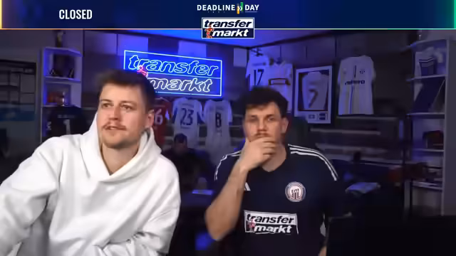 08:03:26In den letzten Minuten des Streams werden noch einige späte Transfers bekannt gegeben, darunter der überraschende Wechsel von Jürgen Locadia zu Crystal Palace. Die Deadlinen ist um 20 Uhr offiziell abgelaufen und es ist unwahrscheinlich, dass es noch späte Transfers gibt. Die Streamer danken den Zuschauern für ihre rege Teilnahme in den Chats und kündigen einen weiteren Gesprächsgast für 20:30 Uhr an, dessen Identität noch geheim ist.