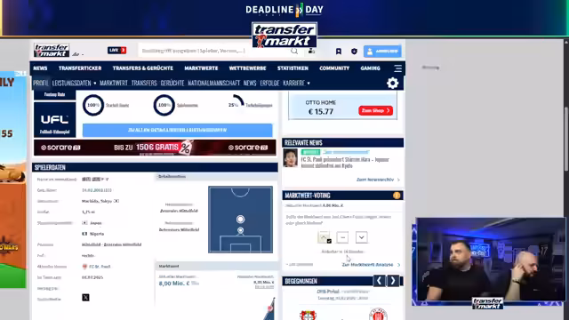02:36:52Der Fokus verschiebt sich zurück zum Deadline Day. Die überraschendste Meldung bisher ist der Leihwechsel von Gruda zu RB Leipzig. Für St. Pauli wird öffentlich bekannt erklärt, dass keine Transfers mehr bevorstehen. Der Stream begrüßt den nächsten Gast, Benz-Dardai von Wolfsburg, und spricht über dessen Karriereweg, seine Nationalmannschaftsentscheidung und seine Entwicklung bei Hertha und Wolfsburg.
