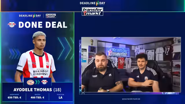 09:29:17Es wurden mehrere Transfer-Entscheidungen in Europa diskutiert. So wechselte Hugo Ekitike von Reims auf Leihbasis mit Kaufoption zu Mainz. Die Ablöse für Luca Netz von Gladbach an Nottingham Forest wurde auf 2,5 Millionen Euro taxiert. Geraldo Becker wurde als fixe Verpflichtung für Schalke bestätigt, während der geplante Wechsel von David Datro Fofana von Chelsea auf Leihbasis nach Straßburg bereits als erwartetes Versehen erwähnt wurde. Auch die teuerste Verpflichtung der Drittligageschichte, Ryan Naderi zu Hansa Rostock für 5,5 Millionen Euro plus Weiterverkaufsbeteiligung, wurde nochmals thematisiert.