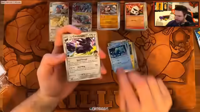 08:03:25Nachdem der Streamer die verkaufte Ware und die anstehende Löschung der Werbung kommentiert hat, leitet er thematisch zu einem Pokémon Opening über. Er erwähnt, dass das letzte Paket im März durch DHL verloren ging, weshalb er die Karten später erhalten hat. Das nächste geplante Set ist 'Disney Locana', gefolgt von 'One Piece OP09' und 'Magic the Gathering'. Das aktuelle Set trägt den deutschen Titel 'Reisegefährten'.