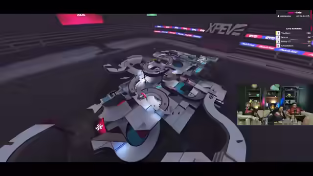 05:29:50Das große Finale startet mit der ersten Runde auf der Map Bubblegum. Der Fokus liegt auf dem Vorjahressieger Epos. Es wird erwartet, dass es enge Runden geben wird. Es wird spekuliert, wer das Turnier gewinnen wird, wobei Karl aufgrund seiner aktuellen Form favorisiert wird, obwohl Epos eigentlich gewinnen müsste. Karl wird als guter Controller-Spieler mit Xbox-Layout erwähnt. Es wird sich auf Epos konzentriert, der eine sehr gute Zeit fährt und in der ersten Runde eine Ansage macht. Es wird über die ungewöhnliche Controller-Haltung der Spieler diskutiert, bei der die Hand teilweise unter dem Tisch ist.