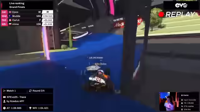 01:00:57Mime setzt sich im Loser-Finale durch, Wizzy und Bings scheiden aus. Es folgt ein Interview mit Bings, der seine Leistung reflektiert und sich über sein Top-8-Ergebnis freut. Er plant, weiterhin an Trackmania-Wettbewerben teilzunehmen und sich auf die World Tour und den World Cup zu konzentrieren. Im Anschluss daran analysiert der Streamer das Spiel und kündigt das Winner-Finale an, in dem Mudda, Carl Junior, Elcon und Epos um den Einzug ins Finale kämpfen werden. Er spekuliert über die Chancen der einzelnen Teilnehmer, wobei er Epos aufgrund seiner starken Leistung favorisiert, räumt aber auch Carl Junior und Mudda aufgrund ihrer langen Anreise Chancen ein. Das Winner-Finale soll in 15 bis 20 Minuten beginnen, die Verlierer erhalten eine zweite Chance im Consolidation Final.