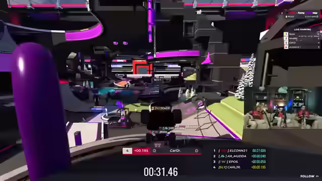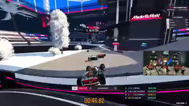 01:58:24Der Streamer kommentiert das Rennen, während Armin mit Essen zurückkehrt. Es wird über Carl Juniors Leistung diskutiert, der laut Armin das Turnier gewinnen sollte. In der aktuellen Runde scheidet Mutter aus, während Elcon einen Snipe landet. Epos zeigt eine starke Leistung und ist der Einzige, der konstant gut fährt. Der Streamer lobt Elcon für seine Leistung und erwähnt, dass er back-to-back den ersten Platz belegt hat. Er wünscht sich eine Kamera auf der Bühne, die die Fahrer von hinten zeigt und die Zuschauer im Hintergrund erfasst. Moda verliert Punkte, während Epos weiterhin führt. Der Streamer erwähnt, dass Epos kurz vor dem Finaleinzug steht und dass Elcon und Karl Punkte sammeln müssen, um noch eine Chance zu haben. Karl gewinnt eine Runde aus eigener Kraft, während Mutter Probleme hat. Der Streamer beschreibt Carl Juniors nervöse Körpersprache und betont, dass die Eiszeit entscheidend sein wird. Elcon bleibt hängen, während Epos souverän in Führung liegt.