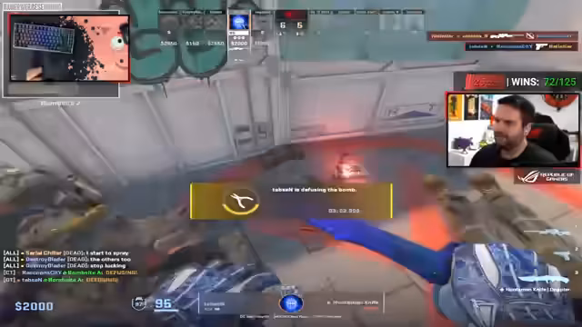 05:56:11Die Kommunikation zwischen dem Streamer und seinem Mitspieler Armin ist zentral. Es werden Taktiken wie das Halten von Positionen, das Setzen von Smokes und das Nutzen von Flashes besprochen. Der Streamer äußert Unzufriedenheit mit den Leistungen des Gegnerteams und vergleicht seine Elo mit deren. Er kritisiert, dass das Gegnerteam spielerisch nicht überzeugt, aber sehr defensiv spielt und lange auf Pushes wartet. Das Ziel ist es, die Map zu kontrollieren und gezielte Executes durchzuführen.