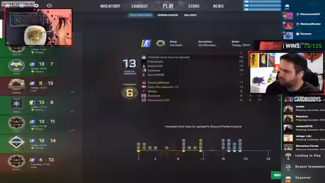 05:01:28Das Hauptziel des Streams ist es, den Teamkollegen Armin auf roten Rang zu boosten. Der Streamer erklärt, dass sie sich täglich mehrere Stunden lang in den Arsch schicken müssen, um die Medaille mit 125 Siegen zu farmen. Sie spielen jedoch ausschließlich gegen Cheater auf dieser Elo-Stufe, was das unmöglich macht. Der Streamer ist frustriert, dass er seine Major-Medaillen nicht zeigen kann, während andere Cheater ihre Erfolge flexen. Er wundert sich, warum Armin die Major-Münze von Köln trägt, obwohl es keine gibt. Die Stimmung ist angespannt, da das Ziel des Boostens durch die Cheater-Szene blockiert wird.