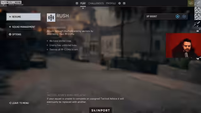02:16:04Der Stream wechselt vom Squad-Deathmatch zum 'Rush'-Modus. Die taktische Herangehensweise ändert sich grundlegend, da das Team nun Angriffs- oder Verteidigungsziele wie das Plätzen oder Entschärfen von Bomben umsetzen muss. Das Gameplay ist stark auf die Koordination zur Zielerreichung ausgerichtet, und es werden taktische Manöver wie das Halten von Punkten (Spots) und das defensive Campen in Schlüsselgebäuden thematisiert.