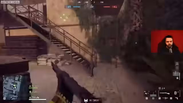 02:40:32Während des Streams werden technische Eigenheiten im Spiel und Hardware-Probleme diskutiert. Ein Bug, der den Spieler am Aufheben hindert, wird erwähnt. Zudem geht der Streamer auf Details der Karten- und Level-Designs ein, beschreibt die Funktionsweise des 'King of the Hill'-Modus und kommentiert die Stärken und Schwächen verschiedener Waffen und Klassen, wie z.B. die Überlegenheit der Schrotflinte im Nahkampf.
