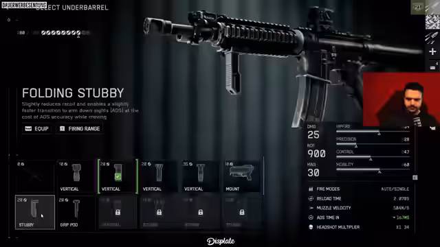 00:17:42Im Fokus steht nun der Bau und die Anpassung der M4A1-Waffe. Der Streamer testet verschiedene Visiere und Griffoptionen, um das beste Setup für seinen Spielstil zu finden. Er entscheidet sich für ein Red-Dot-Ziel und einen Griff, der Präzision und Kontrolle verbessert. Besonders wichtig ist ihm ein roter Laser, der laut Spiellogik nicht vom Feind gesehen werden kann, was ihm taktische Vorteile im Nahkampf verschaffen soll. Das finalisierte Loadout wird gespeichert und als Favorit markiert.