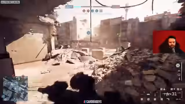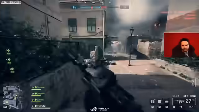 02:55:19Die aktuelle Partie im Spielmodus Rush findet auf der Map 'Bombustion' statt, die der Streamer als seine unbeliebteste Map bezeichnet. Der Fokus liegt darauf, Bomben zu legen und zu entschärfen, während auch Fahrzeug-Herausforderungen im Spiel verfolgt werden. Das Gameplay ist von intensiven Kämpfen geprägt, wobei der Streamer versucht, seine Squad-Mates zu unterstützen, während gleichzeitig ein starker gegnerischer Sniper aktiv ist, der den Fortschritt massiv behindert.