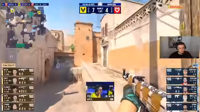 01:54:01MaUs ist in der zweiten Halbzeit deutlich stabiler und spielt ihren Playstyle besser. Das Map-Pick im Best-of-Five folgt dem Bann-Bann, Pick-Pick-Pick-Pick-Format. Vitality kämpft mit finanziellen Einschränkungen und hat weniger Utility, während MaUs über drei Molotovs, drei Smokes und viele Flashbangs verfügt. Analysten betonen die Wichtigkeit für MaUs, konsequent Utility einzusetzen, da Vitality diese Runde wahrscheinlich kaufen wird.