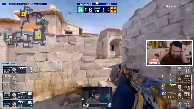 06:44:25Ein dramatischer Moment im Spiel wird angesprochen, in dem ein Spieler gegen drei Gegner kämpft und am Ende überlebt. Die Analyse der ersten Map zeigt eine starke Leistung des Teams BC Game, insbesondere von Spieler Aragon mit 38 Kills und einem Rating von 1,47. Der Streamer betont, dass Legacy mental eingebrochen sei und keine Timeout zog, was als Zeichen für das Scheitern des Spiels gilt.