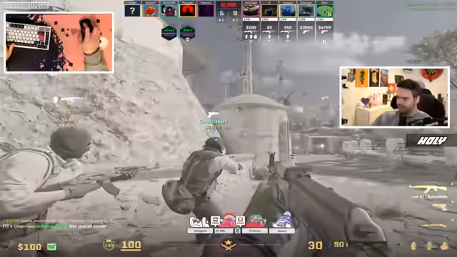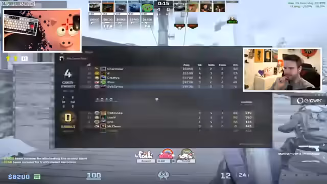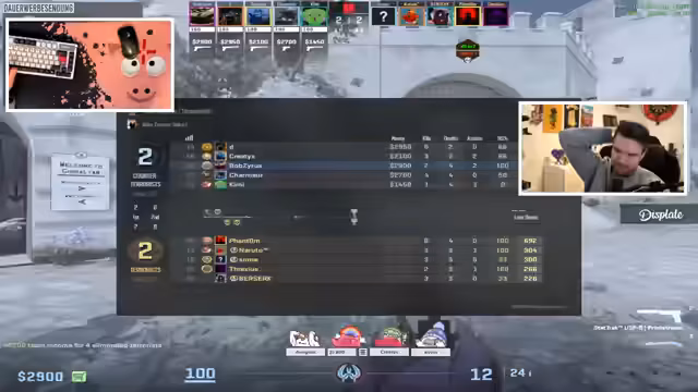 02:27:04Das Stream-Gameplay zeigt intensive taktische Auseinandersetzungen. Es werden Situationen beschrieben, in denen Spieler isoliert sind, unterlegen wirken oder vom Glück abhängig sind, wie 'Nur du. Noch nicht durch. Nur einer gewesen.' Ein Spieler kritisiert eine Entscheidung: 'Er hat sich genannt. Ach mann. Du hast assumed, warum. Scheiße.' Die Kommunikation im Team scheint nicht immer optimal, was zu fragwürdigen Zügen wie 'Er hat Bombe, aber er gibt dir Bombe' führt. Ein vielversprechendes Spiel auf einer Map wird mit dem Hinweis auf eine vertragliche Vereinbarung unterbrochen: 'Das war geile Bilder für Sticker drin, aber wie gesagt, es wurde geschworen, die Bilder niemals öffentlich zu teilen.'