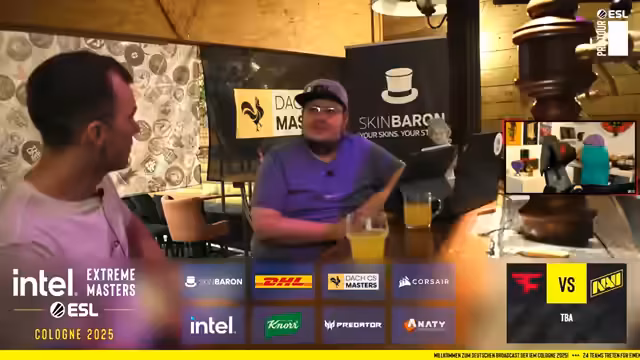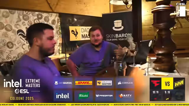01:38:38Die Live-Situation vor Ort bei der IEM Cologne wird detailliert beschrieben. Die Crew befindet sich in der Loge von Anity, mit einem eigenen Tisch für ihre Watch-Party, während der offizielle Castertisch nur wenige Meter entfernt ist. Es wird erklärt, dass das Team normalerweise nur für den B-Stream benötigt wird, während in den Playoffs das Observer-Duo ausreicht. Das aktuelle Setup erlaubt es, parallel zu den Spielen zu produzieren, ohne einen Nachteil zu erzeugen, und motiviert sogar Zuschauer, sich sportlich zu betätigen, was für die langfristige ESL-Zuschauerbasis förderlich sein könnte.