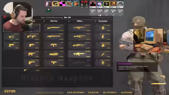 03:32:59Der Streamer spielt ein CS:GO-Match, um seine Elo zu steigern, und diskutiert zunächst Skin-Werte, während die Gegner im Spiel als nicht schlecht eingestuft werden. Es kommt zu Kritik an der fehlenden Kommunikation der Mitspieler, die den Streamer stört. Während des Spiels auf der CT-Seite wird versucht, offensiv im B-Haus zu drücken, und nach einer knapp gewonnenen Runde wird der Triumph gefeiert. Allerdings häufen sich schon jetzt Hinweise auf Probleme mit der Maus, die im weiteren Verlauf immer mehr in den Vordergrund treten und das Spiel negativ beeinflussen.
