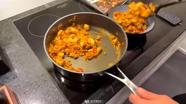 01:28:47Trilluxe demonstriert seine Kaffeemühle und den kompletten Brühprozess. Er verwendet frische Bohnen und erklärt das Leveling-Tool, das durch Schwerkraft funktioniert und die gemahlenen Bohnen platt macht. Das Puck-Sieb verhindert, dass Kaffeesatz in die Maschine gedrückt wird. Nach dem Einschenken zeigt er die Extraktion, merkt aber, dass der Druck und die Geschwindigkeit optimiert werden müssen. Die Cremabildung ist noch nicht ideal, aber er demonstriert den Prozess mehrfach, bevor er zur Milchschäumung übergeht, wo er Probleme mit der Konsistenz hat – entweder zu dünn oder zu dick. Trotzdem genießt er den Cappuccino und bereitet sich parallel eine Hähnchen-Fajita-Bowl zu.