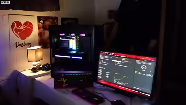 04:05:05Es werden verschiedene Peripheriegeräte von ASUS vorgestellt, darunter ein 610 Hertz Monitor, der für kompetitive Gamer gedacht ist, eine leichte Maus (Harp 2 Ace) mit 48 Gramm und eine Tastatur (Felschen Ace Half X Saivu Edition) in Kooperation mit Astralis. Die Tastatur wird im Stream verlost, da der Streamer die F-Tasten vermisst und weiterhin die Arzot bevorzugt. Nach dem Anschließen der Geräte wird der PC eingeschaltet. Der PC startet erfolgreich und gelangt ins BIOS. Die Motherboard-Temperatur beträgt 22 Grad, die M2-SSD wird erkannt und alle Lüfter laufen. Die CPU-Temperatur liegt bei 29 Grad. Der Streamer freut sich über den erfolgreichen ersten Start und die reibungslose Funktion aller Komponenten. Es wird erwähnt, dass die RGB-Sticks nicht so krass leuchten wie in der Kameraansicht und dass diese noch farblich angepasst werden können. Abschließend wird die Verlosung der Tastatur angekündigt.